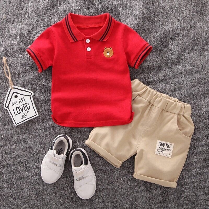 0-6Y Baby Boy Clothes Kids Clothes Boy Set Terno Polo Shirt Clothes Boy Terno Summer Bear Short-sleeved Two-piece Suit