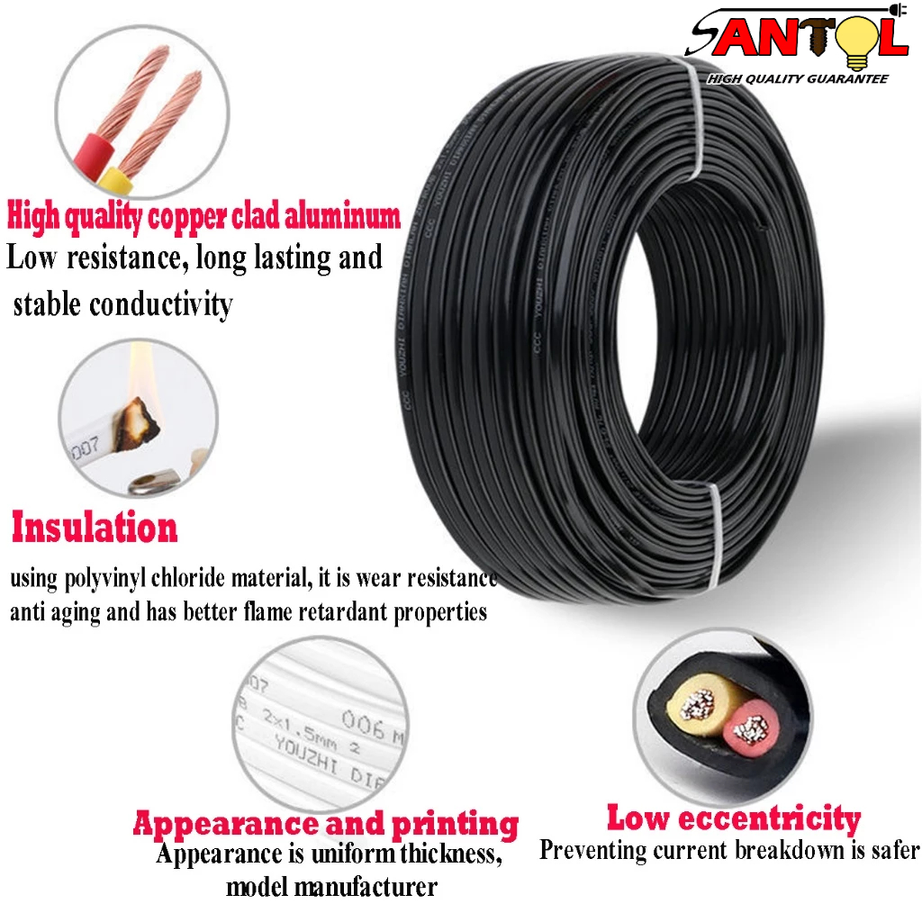 100meters Standard #14 #12 Household Sheathed Wire Outdoor Waterproof 2 Cores Extension Power Cord