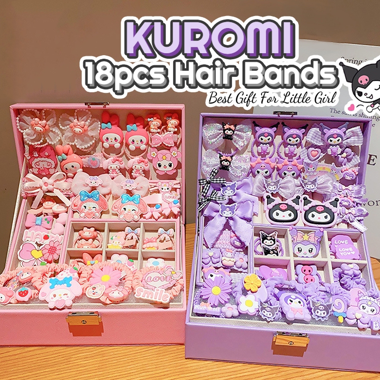 18Pcs Kawaii Sanrio Hair Ties Anime Hair Ring Ornaments Kuromi Cinnamoroll My Melody Hair Rope Clip