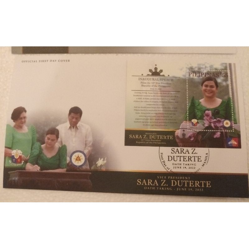 2022 Vice President Sara Duterte inaugural speech ss souvenir sheet stamp on fdc