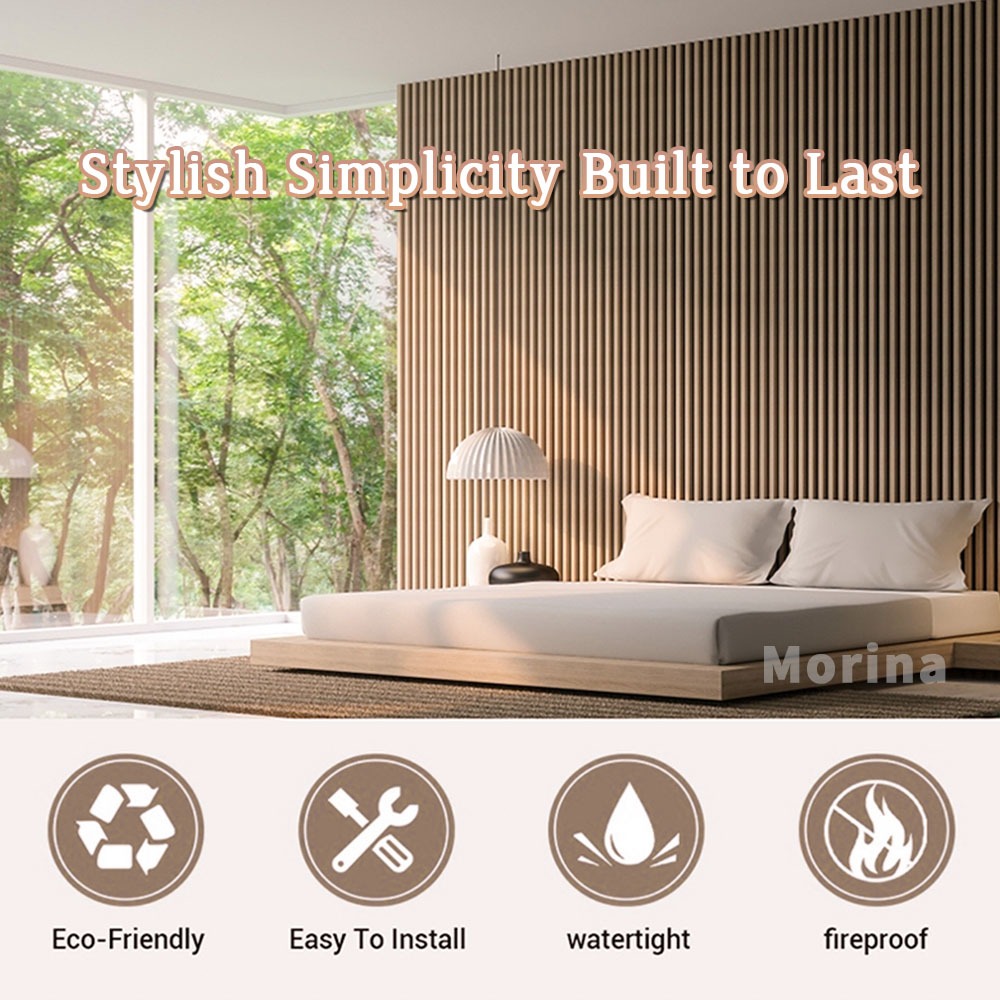 20PCS PVC Wall Panel Solid Wood Board Wallpaper Fluted Wall Panel Sticker Waterproof Grille Design