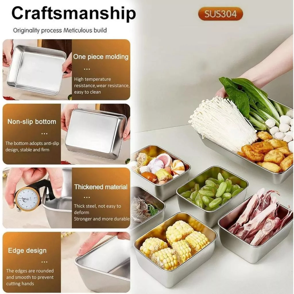 4PCS 304 Stainless Steel Box Kitchen Storage Box Fresh-keeping Box with Lid Household Refrigerator Fruit Containers Lunch Box BBQ Food Trays for Picnic