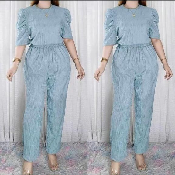 6972-Trendy Plus Size Puff Sleeves BarkCrepe Terno Pants For Women(M-XL)