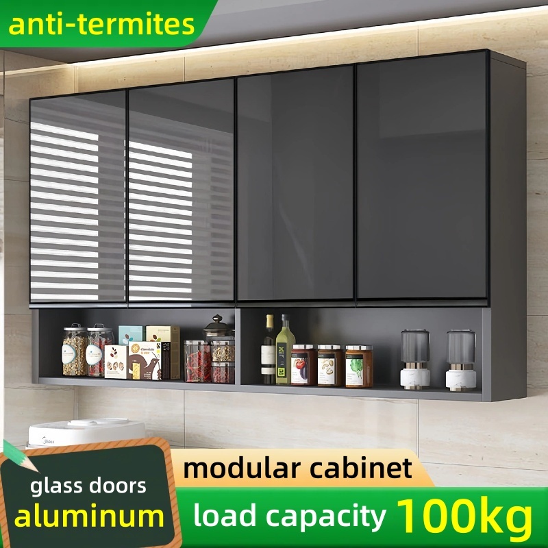 Aluminum Kitchen Cabinet Wall Mounted Glass Pantry Hanging Cabinet Wall For Kitchen Bedroom Storage