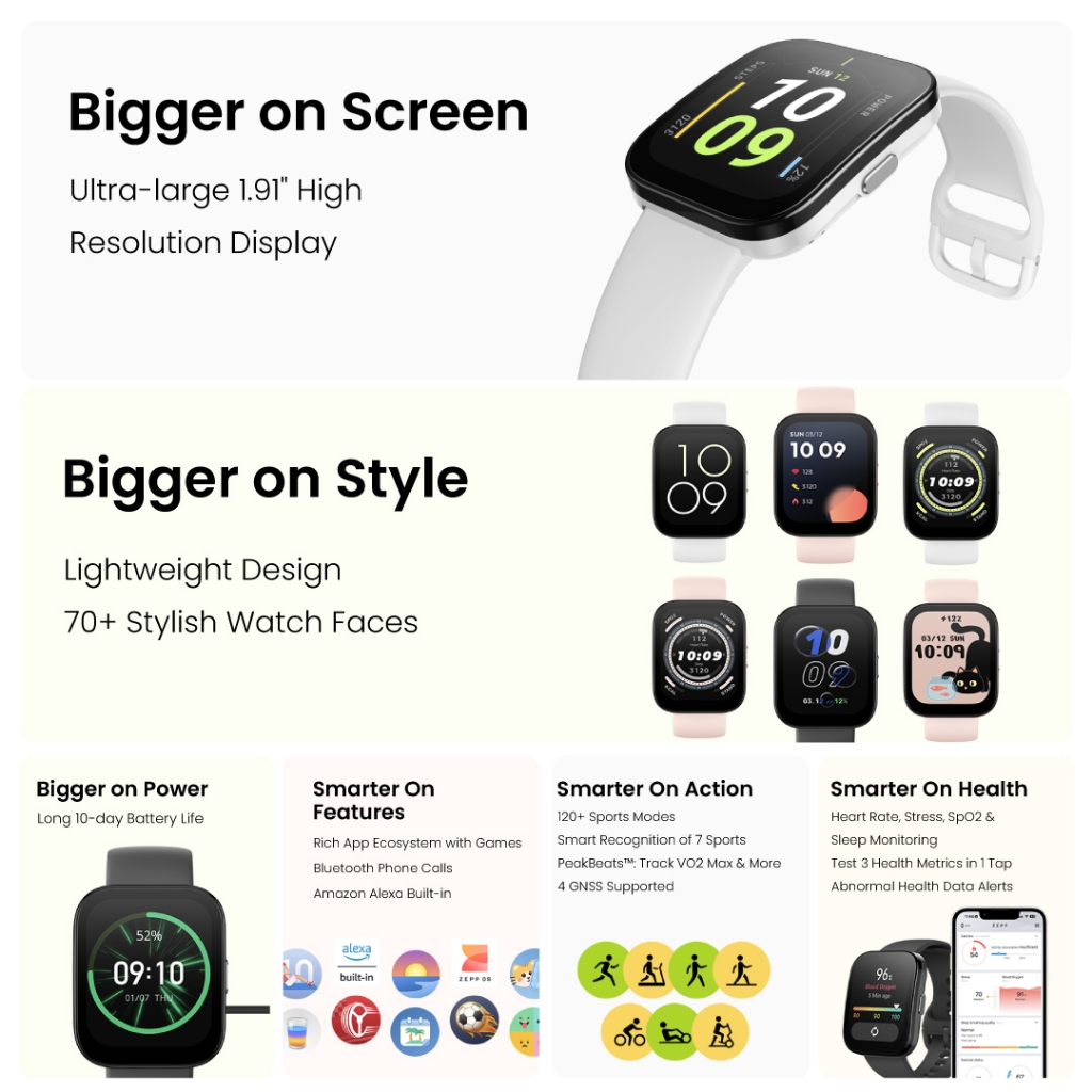 Amazfit Bip 5 Smartwatch 1.91" Display GPS Bluetooth Phone Call Health Fitness Track