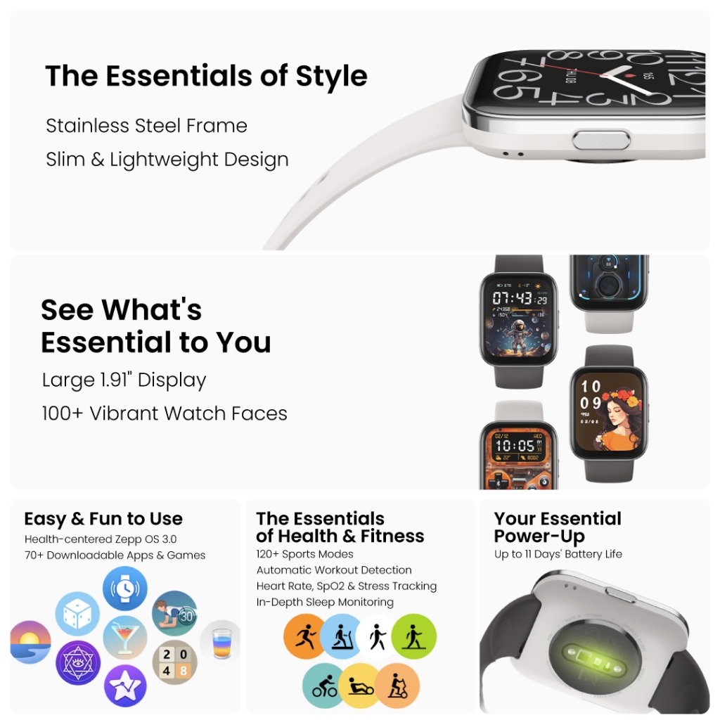 Amazfit Bip 5 Unity 1.91" Large Display Smartwatch Bluetooth Phone Call Fitness Health Data Tracking