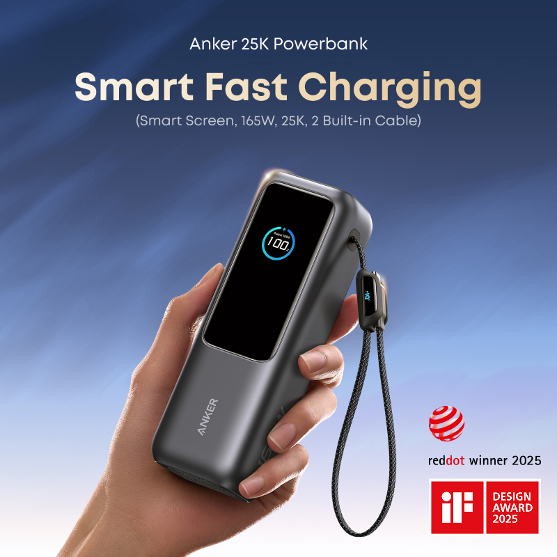Anker Laptop Power Bank 25,000mAh Portable Charger with Triple 165W USB-C Ports for Multi-Device Charging, Built-In and Retractable Cables