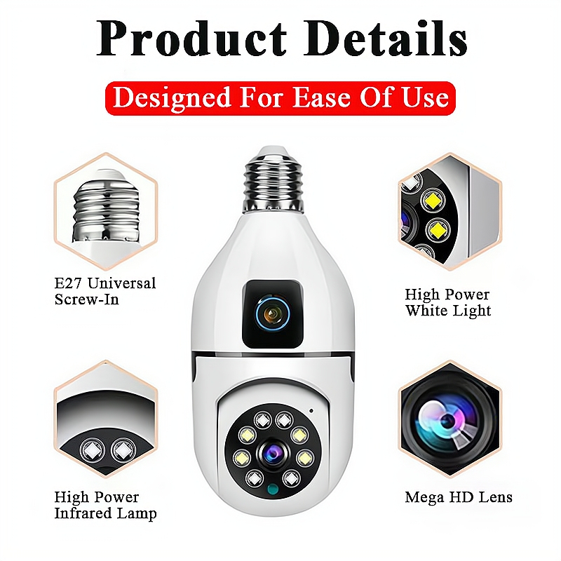 Bulb Dual Lens CCTV Camera 8MP+8MP V380 NO Wifi Needed Auto Tracking Night Vision Connect to Cellpho