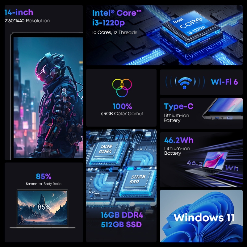 Chuwi Corebook X 2025 Laptop R5-7430U/i9-13900H 8Cores 14 inch FHD IPS Screen 32+1TB SSD WIFI 6 Windows 11 Gaming NoteBook PC
