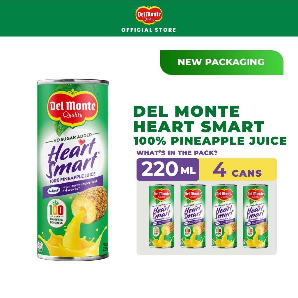 DEL MONTE 100% Pineapple Juice Drink Heart Smart with Reducol for Lower Cholesterol - 220ml x 4