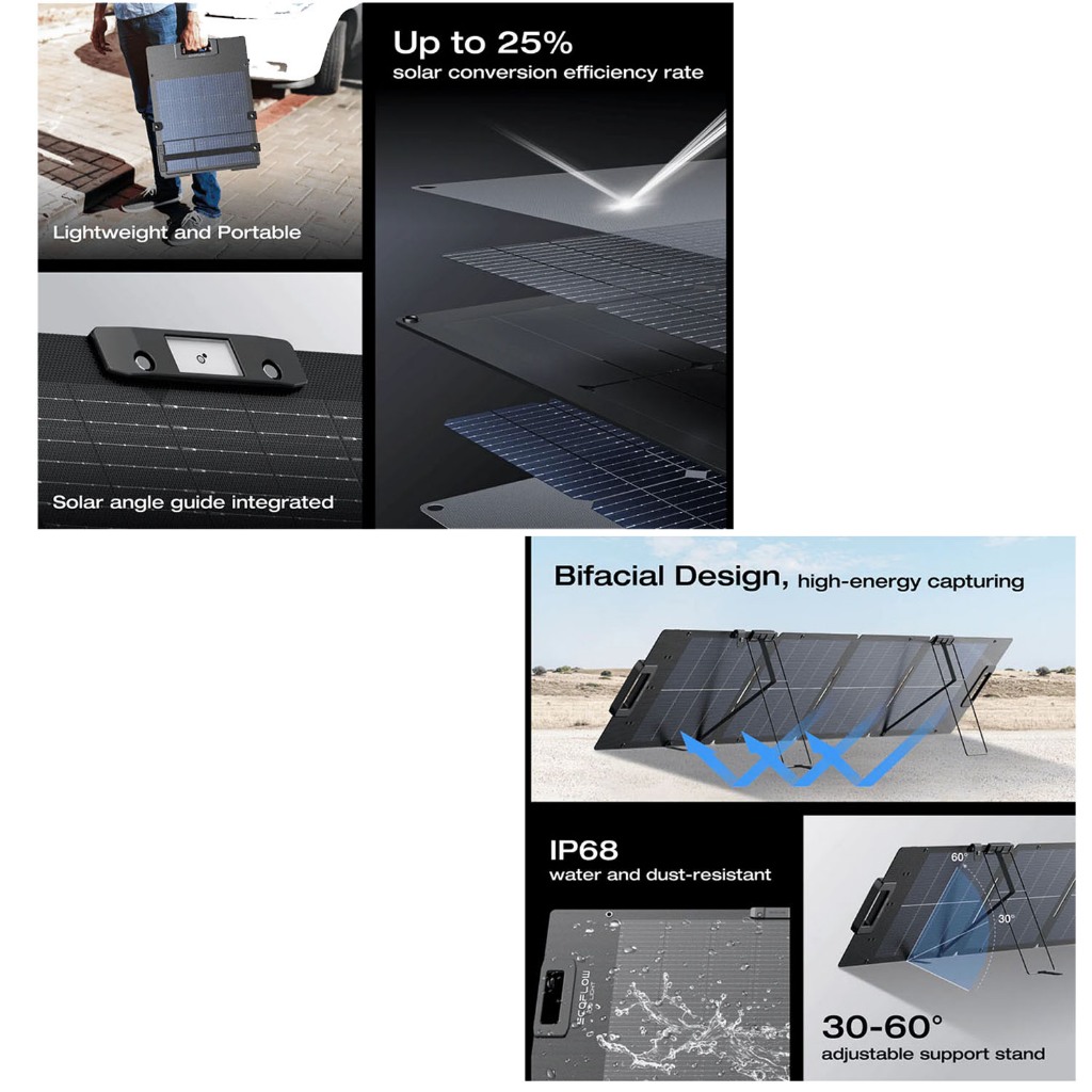 ECOFLOW 60W 110W High-Efficiency Portable Solar Panels with 23% Conversion Rate, IP68 Waterproof