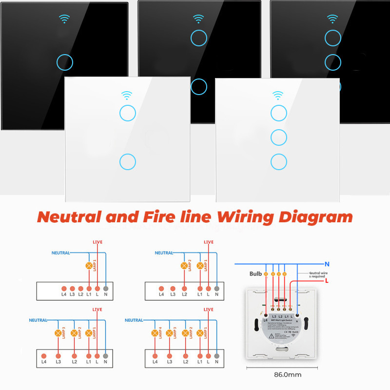 For Alexa Google Home Wifi Wall Button Tempered Glass 1/2/3 Gang Smart Touch Switch Smart Home Remote Control Wall Light Switch Smart Life Timing Smart Switch COD