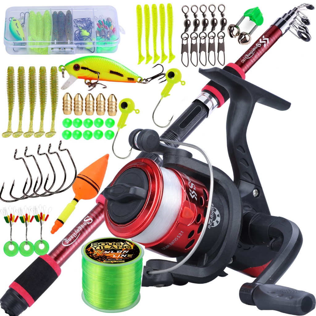 Full Set 1.8m Telescopic Fishing Rod Glass Fiber 6 Sections and Fishing Reel with Line Accessories