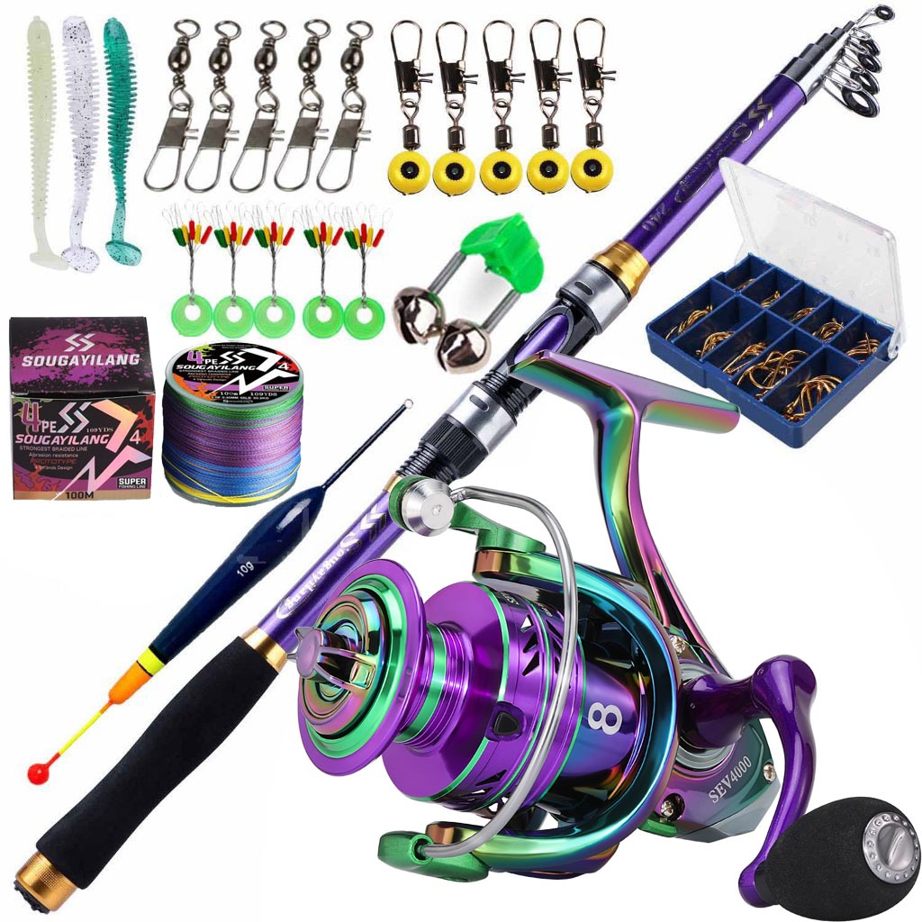 Full Set Spinning Fishing Rod and Reel Telescopic Carbon 1.8/2.7m Aluminum Spool with Line Lure