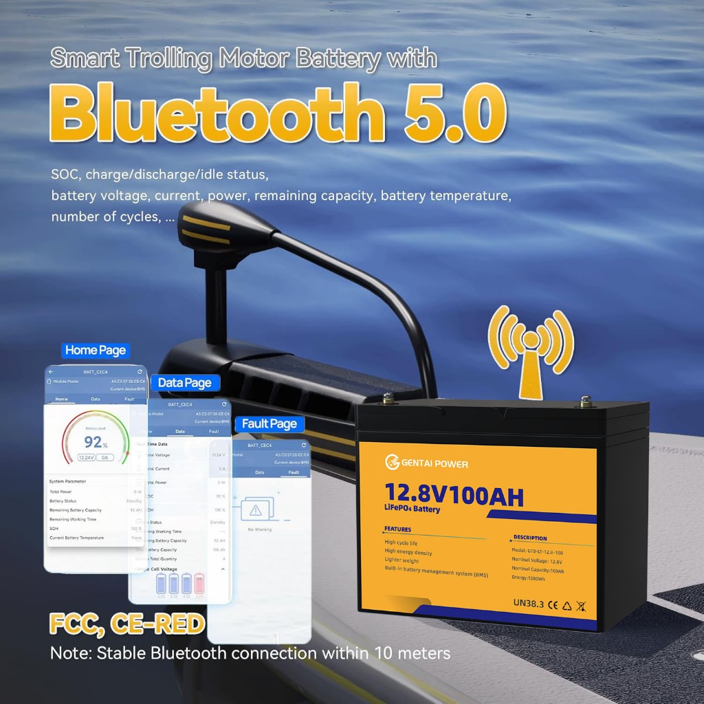 GENTAI 12V 100AH LiFePO4 Lithium Battery Max.1280Wh Energy, Group 24, Built-in 100A BMS
