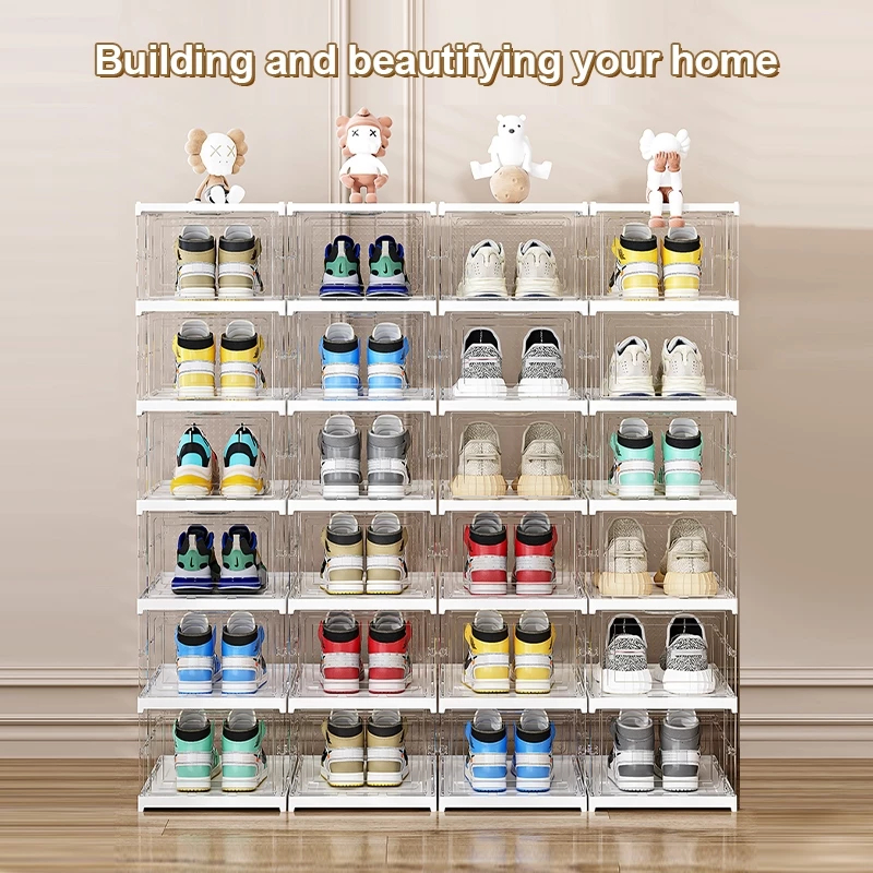 gooreestyle Transparent Foldable Shoe Rack Cabinet Storage Organizer Box Shelf Installation-Free