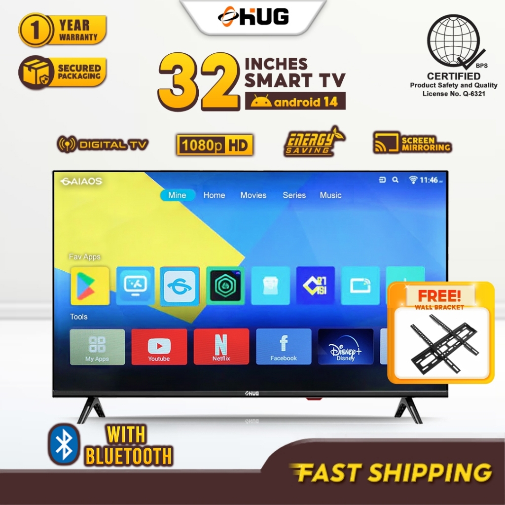 HUG 32 Inches Smart TV Android 15 Digital TV Netflix Youtube 1080p HD Resolution Frameless LT32