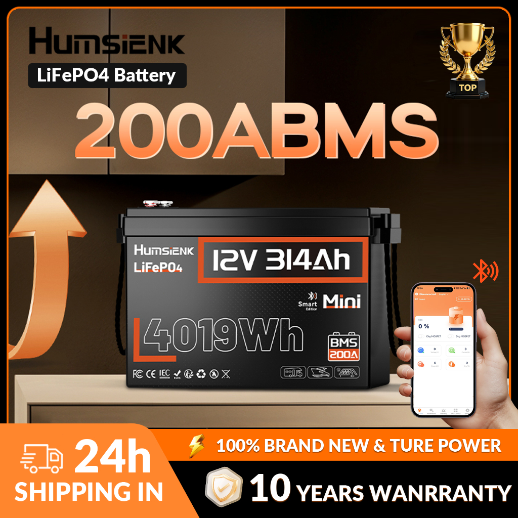 Humsienk 12V 314Ah 100Ah 50Ah Mini Bluetooth Lithium LiFePO4 Battery 200A BMS Solar Energy Battery