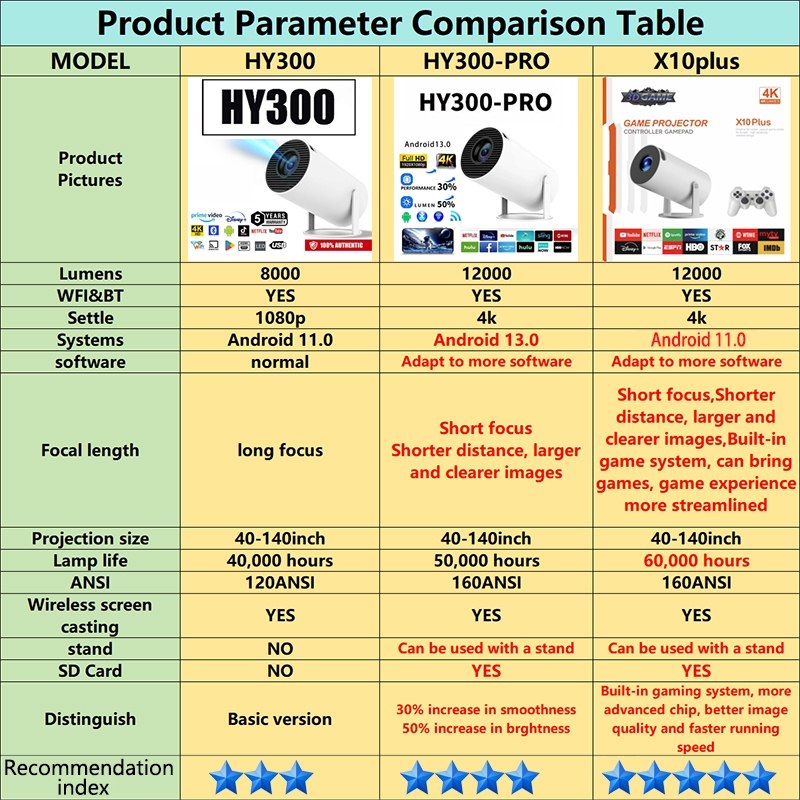 HY300 Smart Projector UHD Portable Mini WiFi Bluetooth Android Connectable 4K