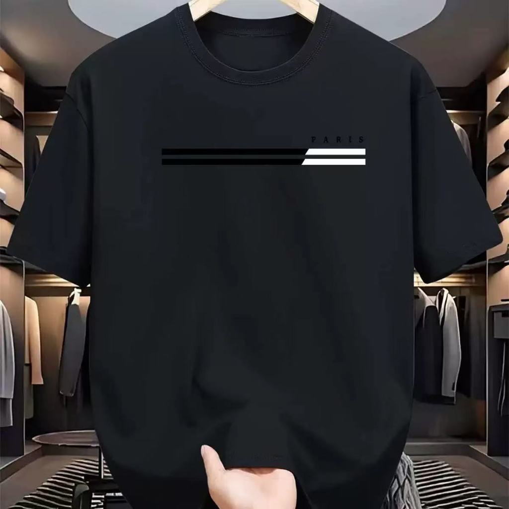 Men's Casual round Neck T-shirt Printed with Paris Letter Pattern Summer Short-Sleeved TopUnisex