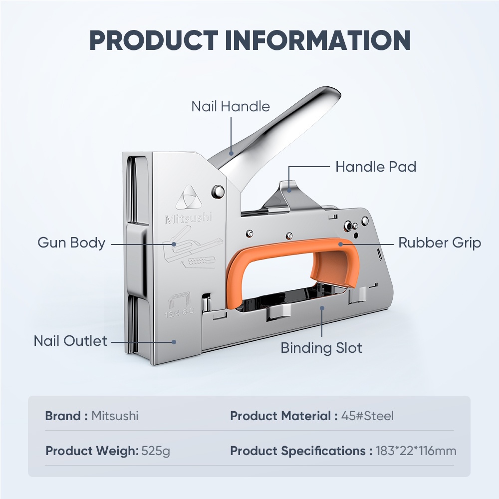 Mitsushi Heavy Duty Staple Gun and Tacker staple- Staple Gun Set with staple wire and 2400pcs nail