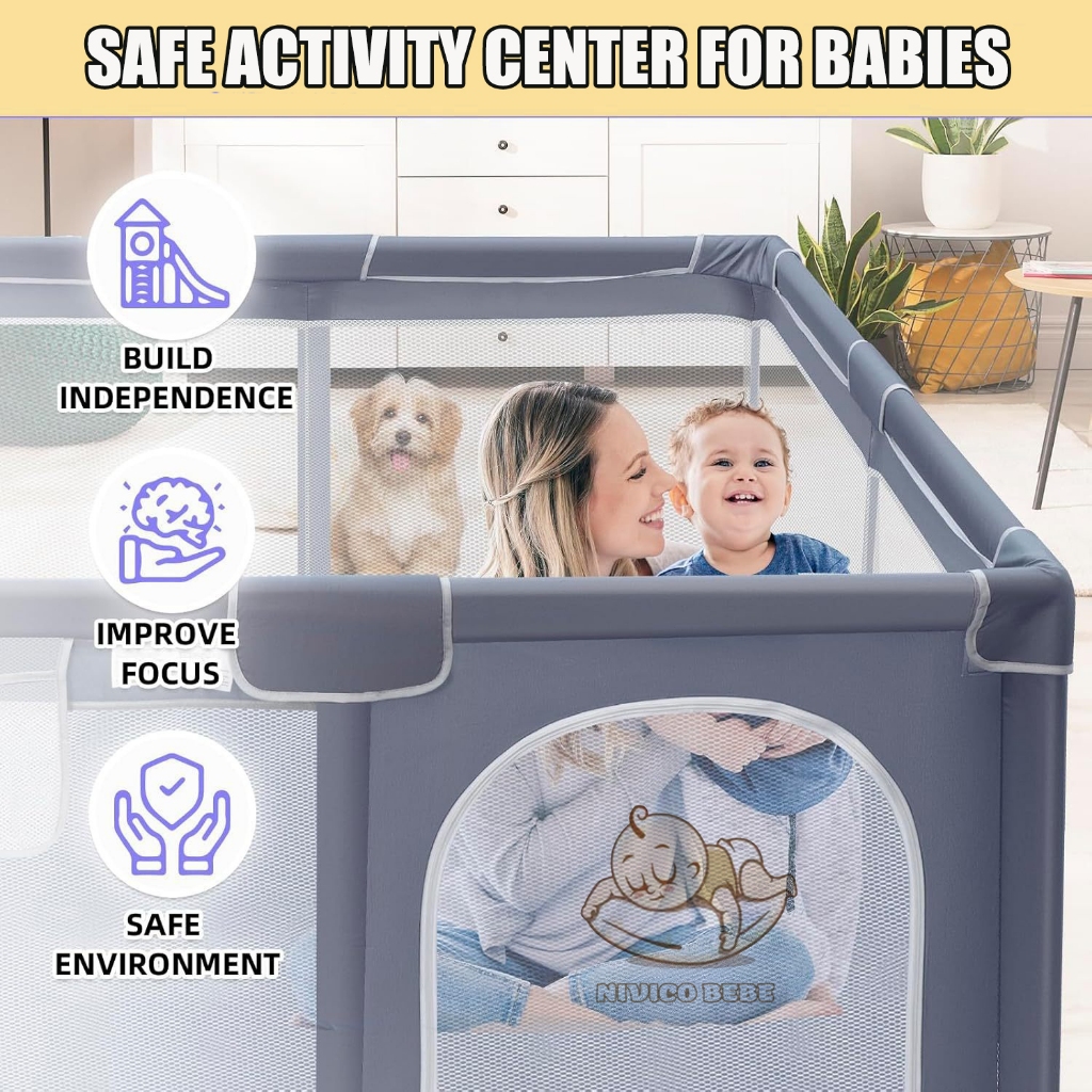 NIVICO BEBE Playpen For Baby With Foam Queen King Size Indoor Breathable Mesh Safety Baby Playpen