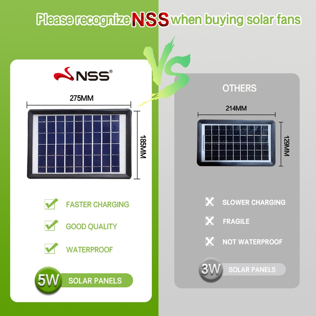 NSS Solar electric fan Rechargeable solar fan with panel solar electricfan with emergency light