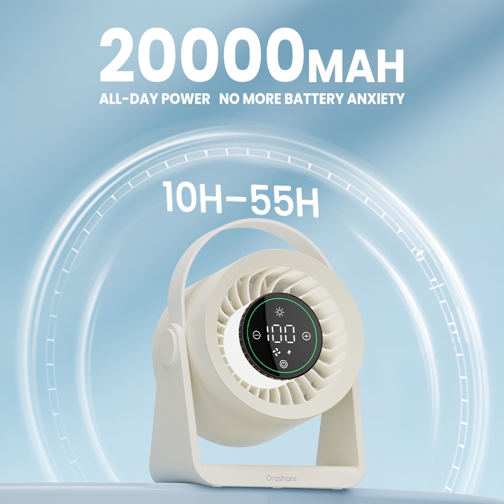 Orashare DF03L Max 20000mAh Rechargeable Desk Fan with LED Light 100 Gears Silent High Speed Fan