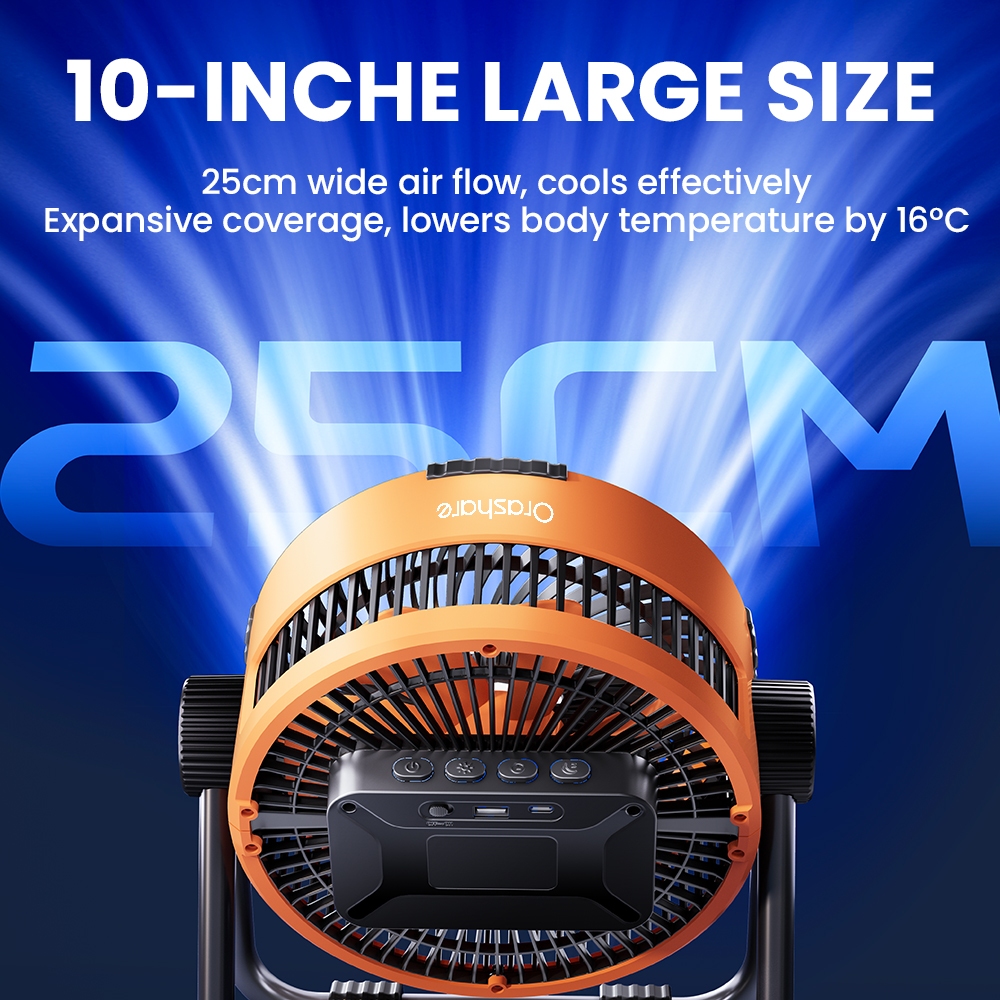Orashare DF04 20000mAh Desk Fan Rechargeable 4 Speeds Wind 10 Inch Storm Fan With Powerbank & Light