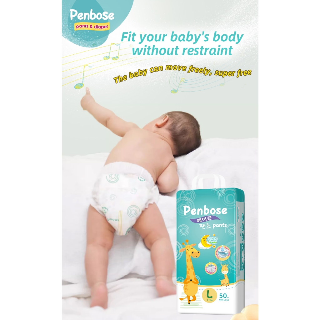 Penbose Baby Diaper or Pull Up Pants Tapes M/L/XL/XXL/3XL 50pcs diaper for Baby Unisex Ultra thin