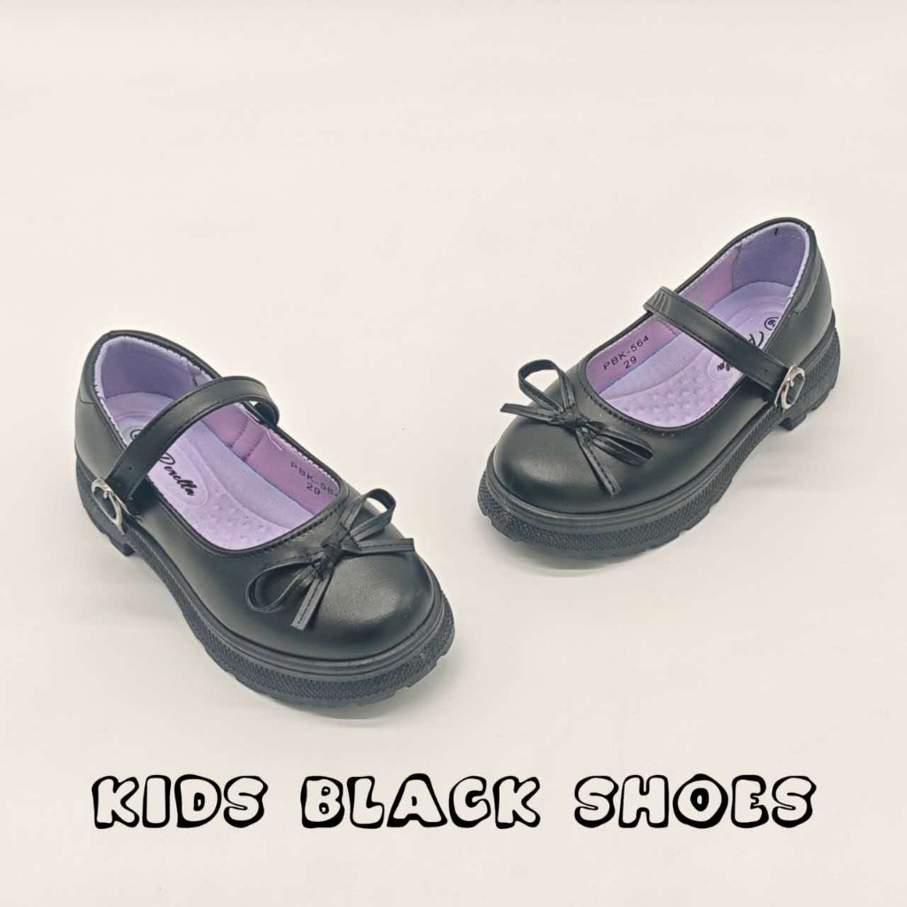 PERELLA Ribbon Leather Black Shoes For Girls School Formal Doll Shoes 3cm Heels(W-BOX)