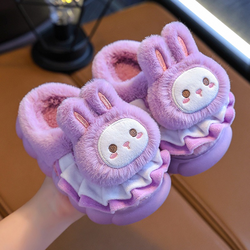 Plush cute rabbit children slippers boys soft sole non slip home fur kids girls Indoor slipper