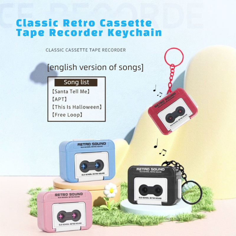 Retro Mini Tape Recorder Keychain Fun Singing Music Playing Keychain Bag Pendant Decoration Couple Friend Keychain Radio New Year gift Birthday Present Confession Gift