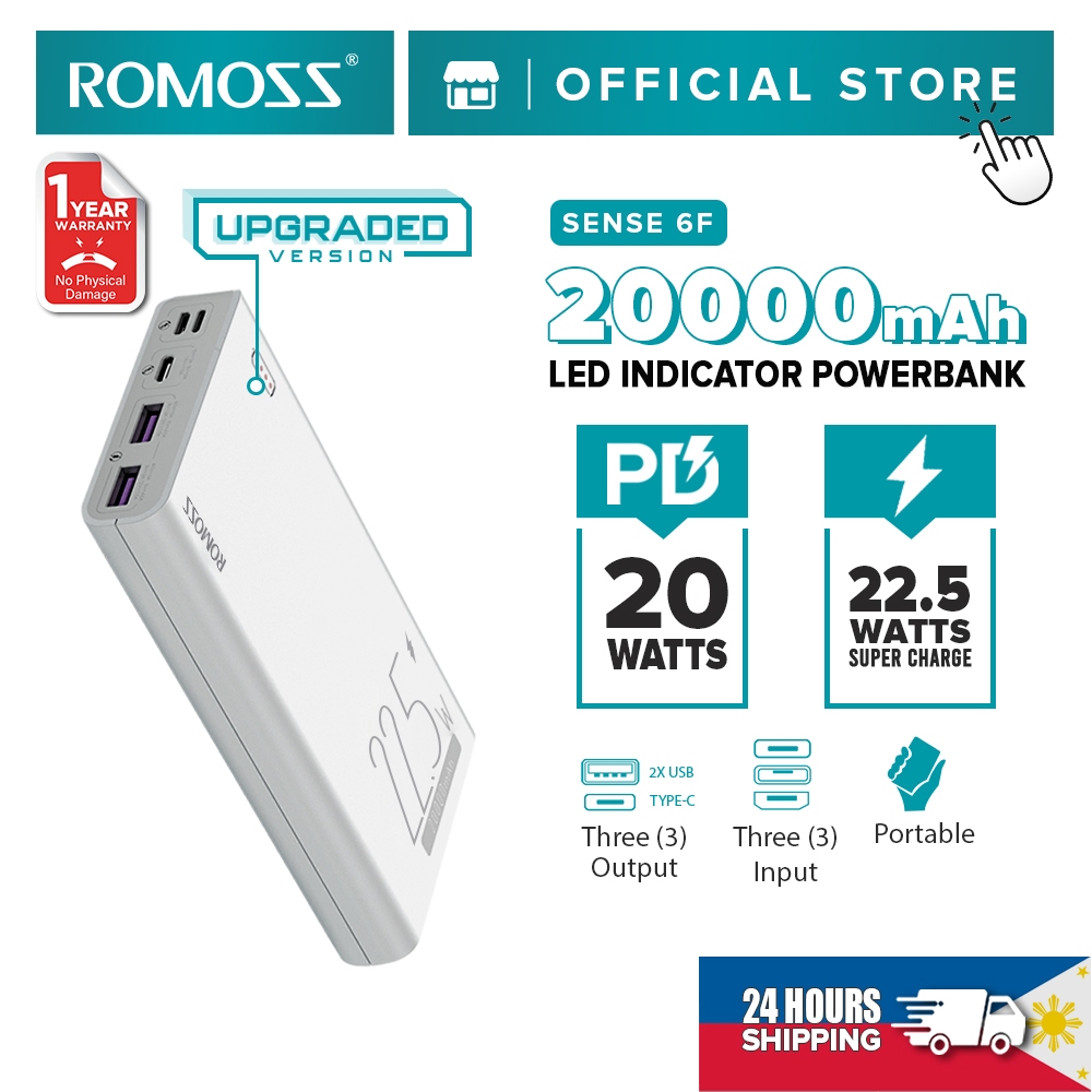 Romoss Sense 6 Plus/Sense 6F 20000mAh Powerbank 22.5W QC 3.0 PD Super Fast Charge Power Bank