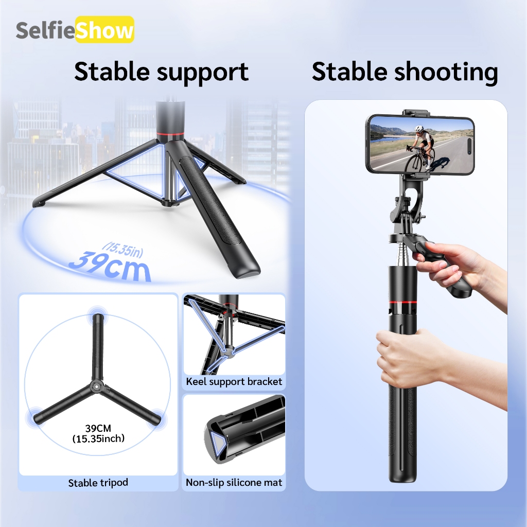 SELFIESHOW 171cm F16 Tripod Shooting Selfie Stick with Fill Light 360° Rotation Tripod Wireless Bluetooth Remote Shutter Foldable Monopod Portable Handheld Telescopic Photography Mobile Phone Holder Live with 1/4 Adapter for iPhone/Android/GoPro
