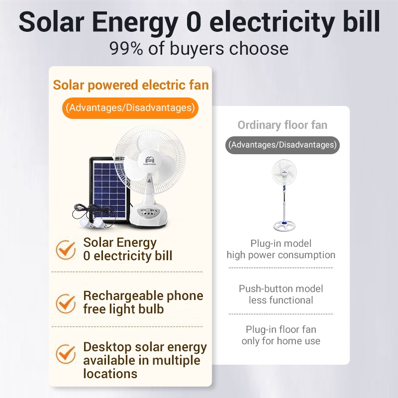 Solar electric fan 12“ 14” 16“ electric fan with solar fan and USB led lights stand electric fan