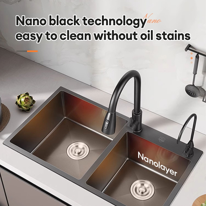 SUS304 kitchen sink thick free drain and basket single double black and silver stainless steel