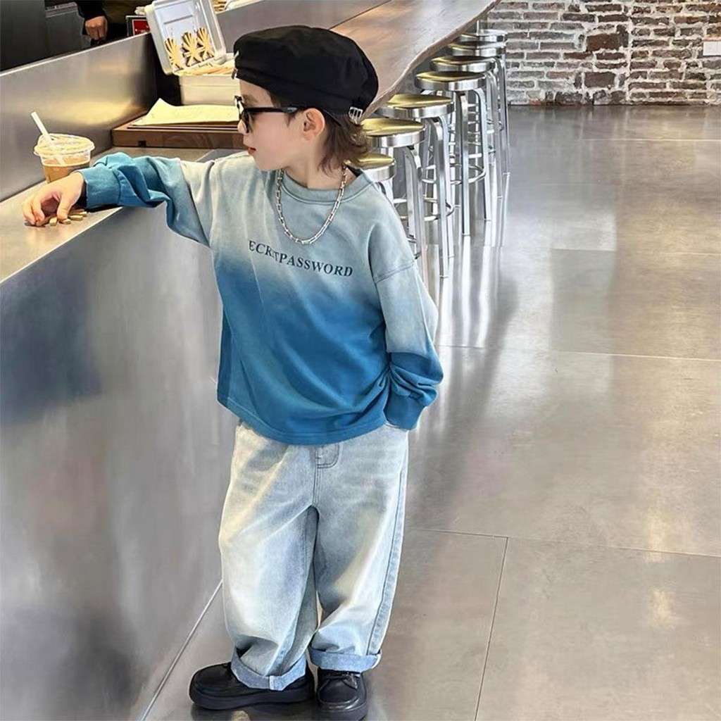 【Sweet Kids】4-14 Years Boy Jeans For Kids Korean Style Fashion Wide Leg Baggy Pants Straight Trouser
