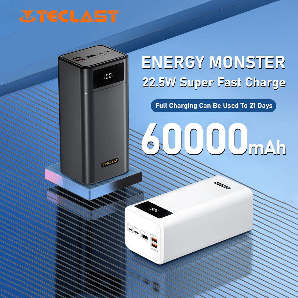 TECLAST A60 Pro 60000mAh 22.5W 5A Fast Charge Dual Input 4 Output LED Numeric Display Powerbank
