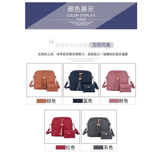 TT BAGS #092 SMALL PU LEATHER KOREAN FASHION 2IN1 SHOULDER BAG WITH TASSEL FOR WOMEN