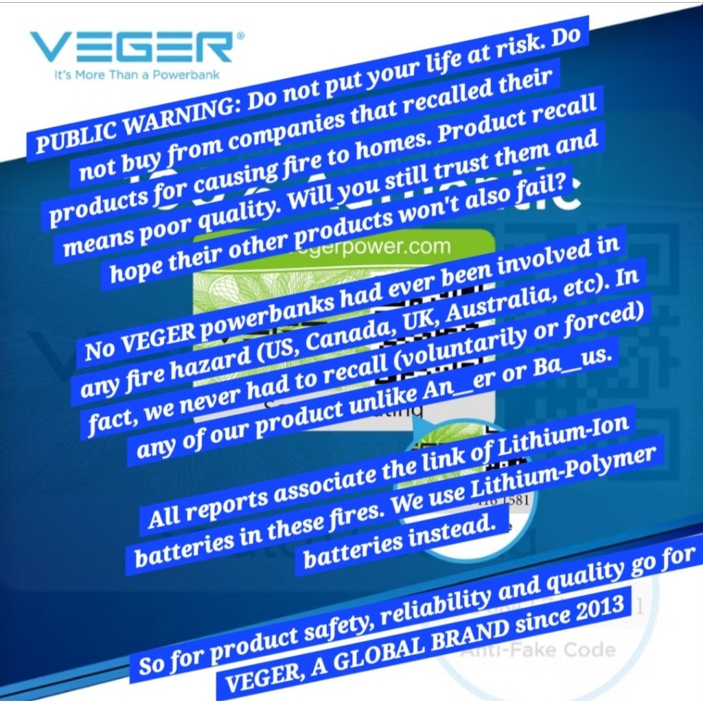 VEGER 10000mAh PD 22.5W Ultra Slim Compact Size Mini Small Fast Charger Power Banks with Cable Cords